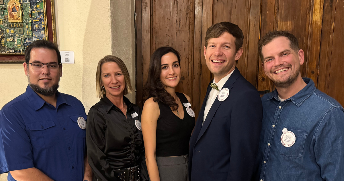 2025 Tech Club Committee Members (from L to R): Ernesto Silva, Tanya Dryden, Lía Lovatto, Joe Wickenhauser, and Mark Donahue.